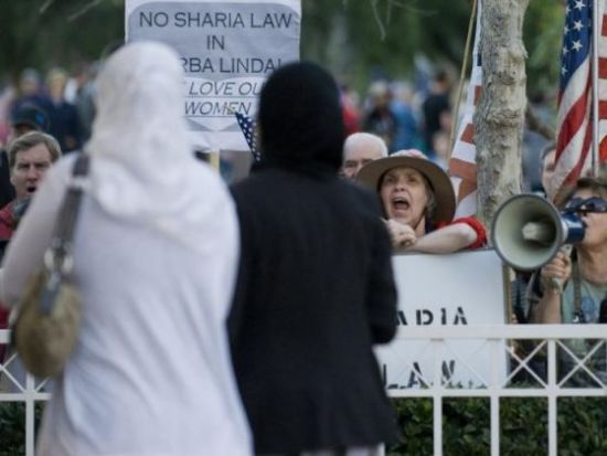 establish women’s shelters and fight hunger and homelessness in the area.  As they walked into the event, they were greeted by protestors who shouted bigoted and ignorant slurs, like “Go back home!” and “You beat up your wife, too?”  Earlier in the day, in the park across the way, a protest was held in which local and federal government officials made statements like “I know quite a few Marines who would be very happy to help these terrorists to an early meeting in paradise.”