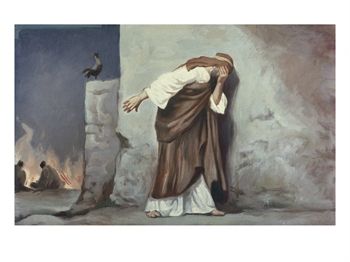 69 Now Peter was sitting out in the courtyard, and a servant girl came to him. “You also were with Jesus of Galilee,” she said. 70 But he denied it before them all. “I don’t know what you’re talking about,” he said. 71 Then he went out to the gateway, where another servant girl saw him and said to the people there, “This fellow was with Jesus of Nazareth.” 72 He denied it again, with an oath: “I don’t know the man!” 73 After a little while, those standing there went up to Peter and said, “Surely you are one of them; your accent gives you away.” 74 Then he began to call down curses, and he swore to them, “I don’t know the man!” Immediately a rooster crowed. 75 Then Peter remembered the word Jesus had spoken: “Before the rooster crows, you will disown me three times.” And he went outside and wept bitterly. (Matthew 26: 69-75)