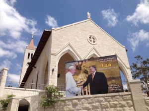 A sign welcoming Pope Francis to Jordan